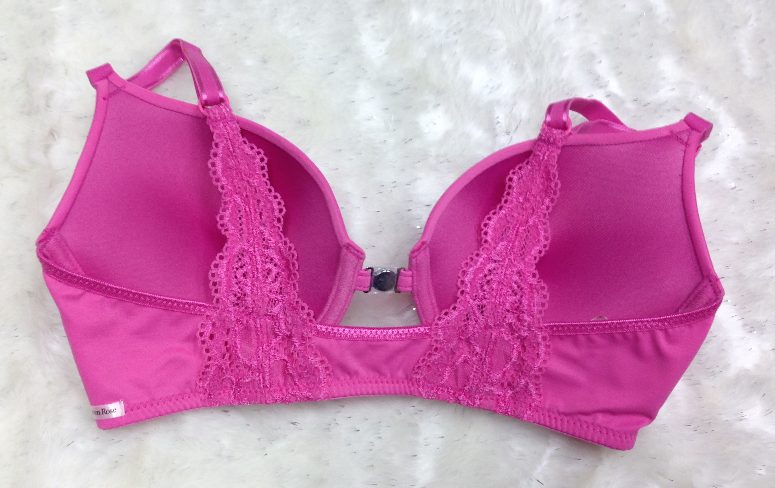 Front clourse Push-up bra– Metal magnet at center front closure – Applique lace for back shoulder strap – Moulded cup – Microfiber fabric: 82% Nylon / 18% Elastane 180gsm |